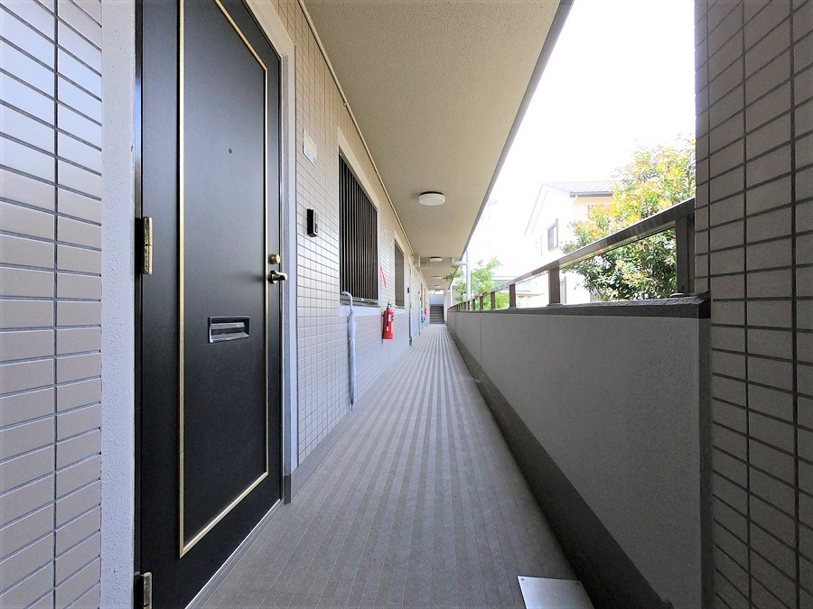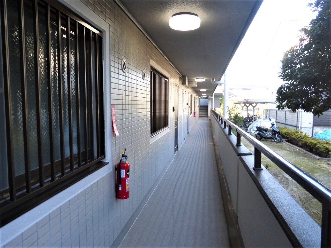 錆びついて老朽化していた共用照明器具はLED照明器具に交換し、省エネですっきりとした印象になりました!