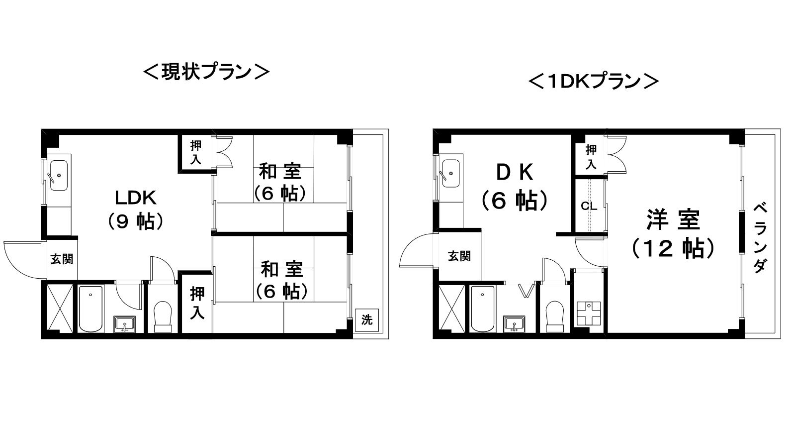 2DKのファミリー向けプランでしたが、地域の需要動向の調査を行い、単身者向けの1DKプランにご提案いたしました。