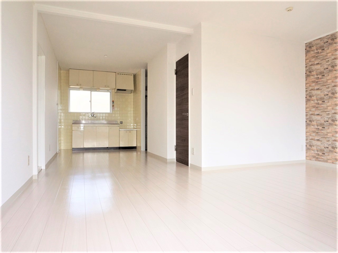 以前の間取りは、脱衣所がなく、洗濯機置場がベランダにある等の理由から長期間空室となっていました。 単身者や新婚世帯に人気がなく修繕費も高くついてしまう和室を解体して、LDK18帖の大空間と広々としたウォークインクローゼットを造りました。